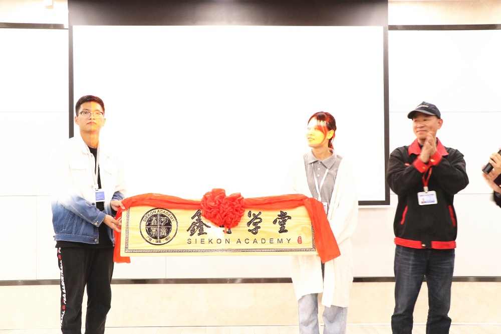 開學典禮最后,鑫可傳動領導共同舉起“鑫可學堂”牌匾并合影留念。