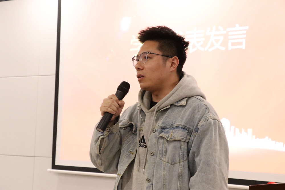 營銷中心產品室聶善齊作為學員代表發言。聶善齊分享了他入職鑫可兩年來的成長經歷和收獲,他鼓勵鑫可學員們要牢記使命,抓住時代機遇,樹立遠大志向,保持昂揚斗志,積極主動學習,持續增長本領,將工作和學習融為一體,積極投身到公司發展壯大的進程中,與公司共同成長。