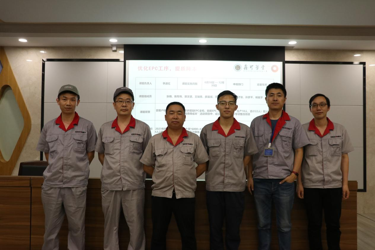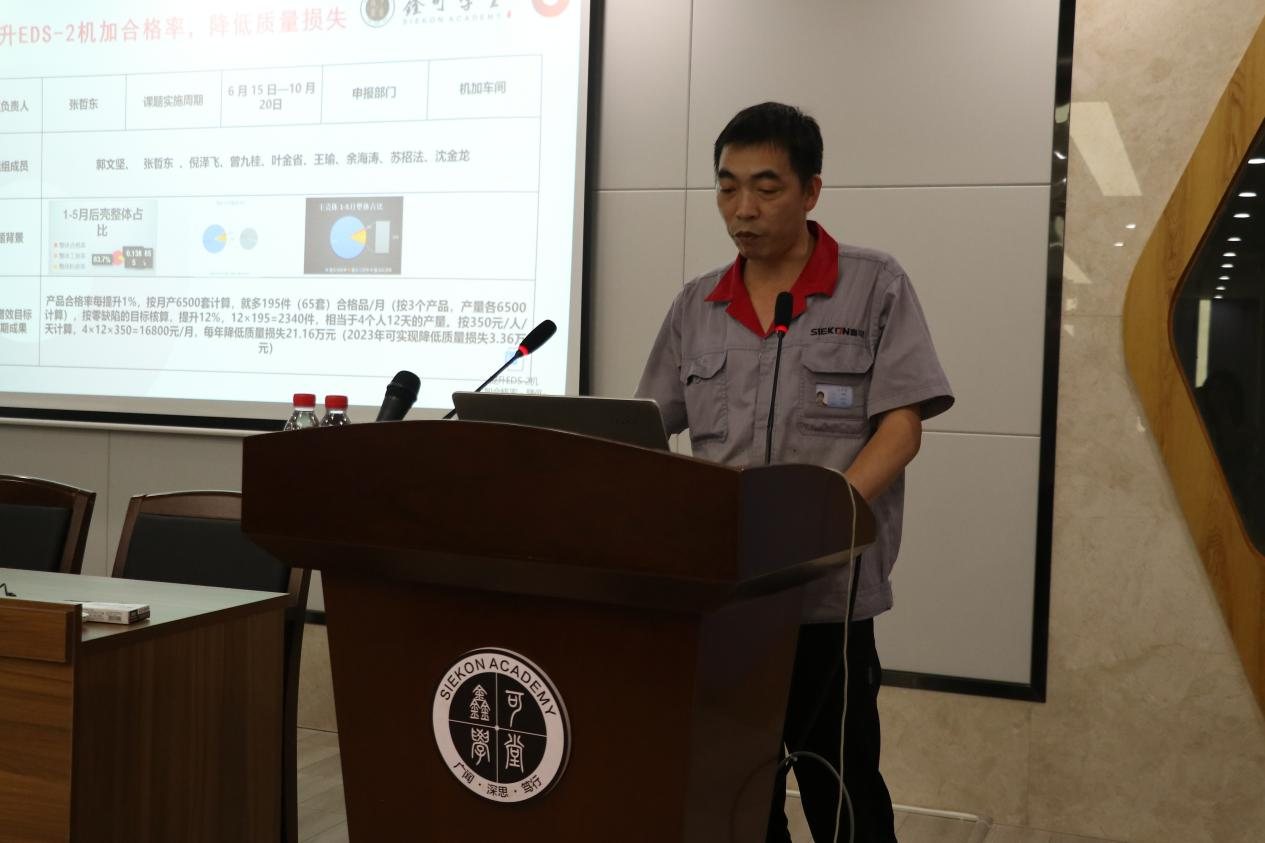 為推進落實在鑫可20周年慶典上發布的“反浪費、降成本”行動方案,2023年7月5日晚,公司在鑫可學堂舉行了“反浪費,降成本”十大課題發布會暨《IE八大浪費》培訓活動。公司常務副總經理馬強、副總經理兼經營管理委員會副主任陳光耀、副總經理龔峰、財務總監郭蓮芳、行政總監黃建宇、各部門負責人及各降本課題組成員近60人參加了本次發布會,副總經理陳光耀主持了本次發布會。