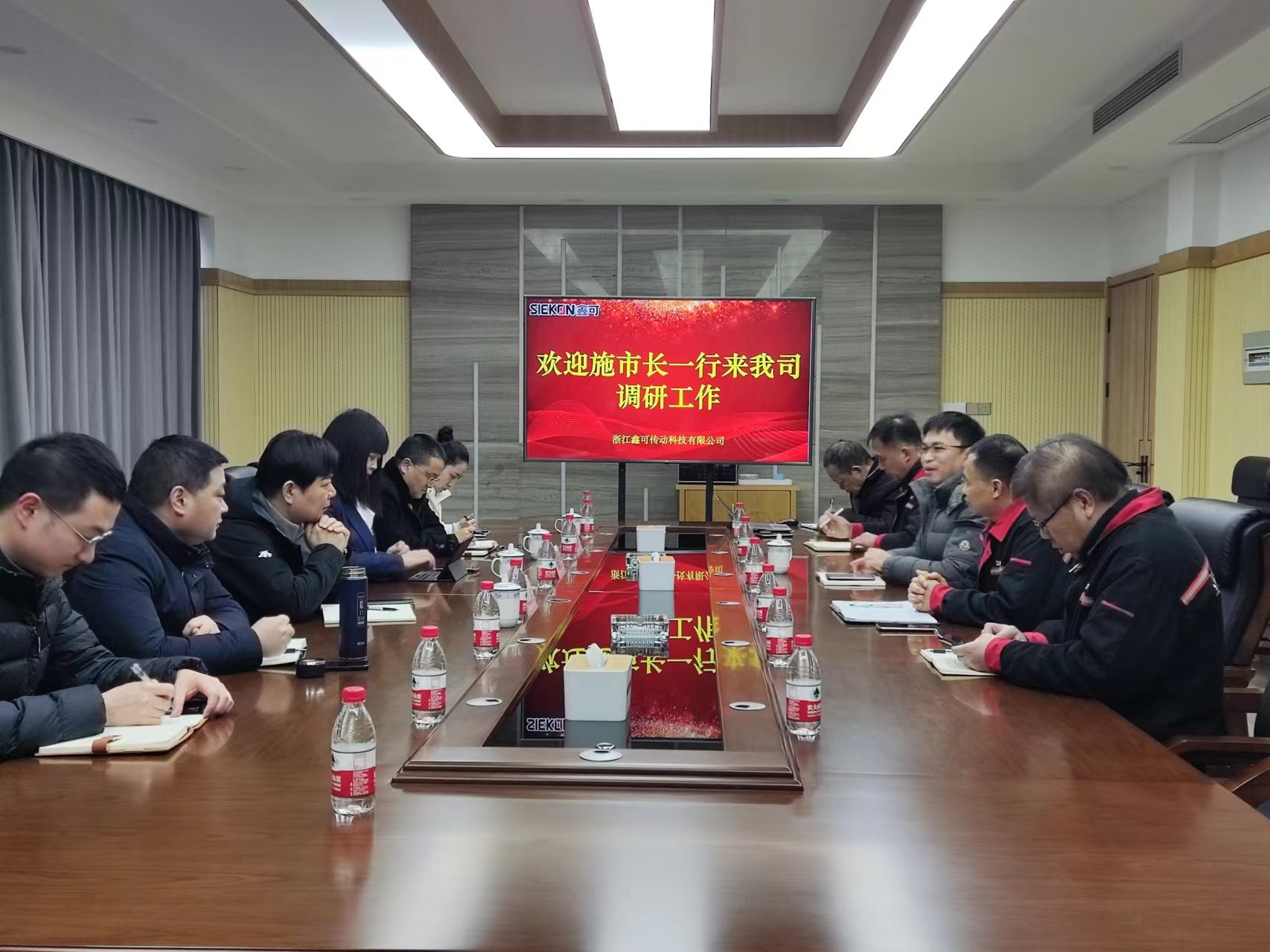 2024年2月29日上午,桐鄉市人民政府副市長施如玉蒞臨鑫可傳動調研工作,桐鄉市人力資源和社會保障局黨委書記、局長沈建良,市府辦副主任宋亞平及市人力資源保障局相關負責人陪同調研。鑫可傳動董事長於文勇、公司副總經理兼經營管理委員會副主任陳光耀參加座談。