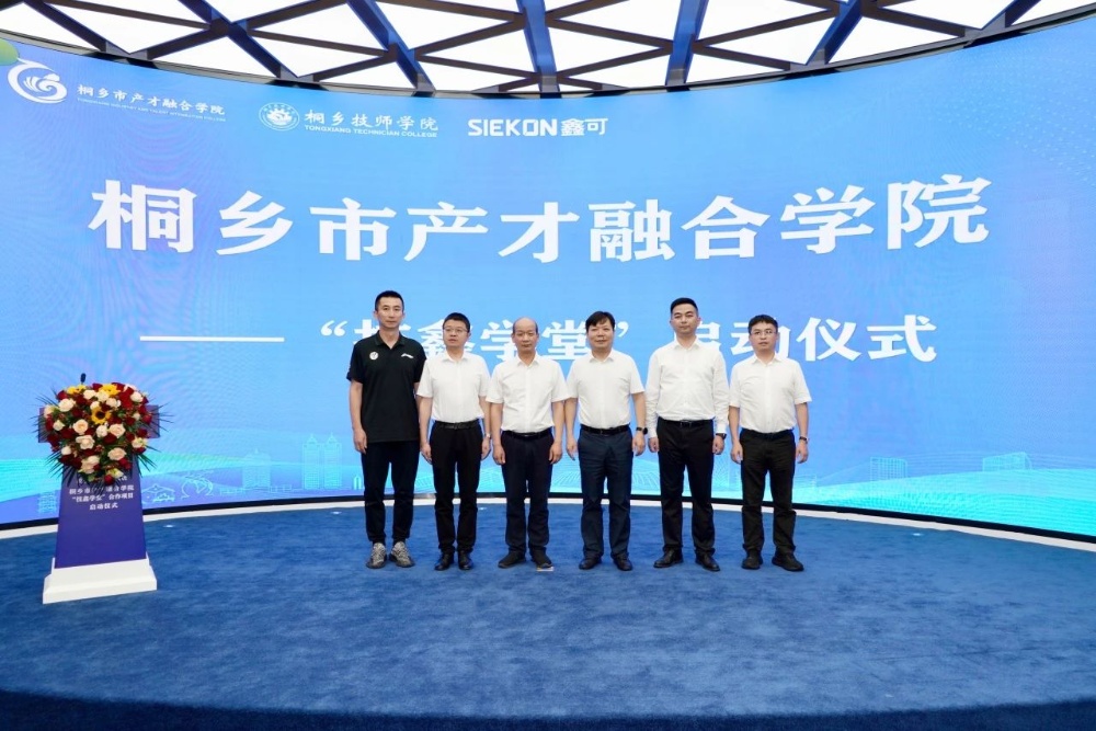 桐鄉市產才融合學院“技鑫學堂”與浙江鑫可傳動科技有限公司、桐鄉技師學院正式啟動。啟動儀式上,三方共同為實訓基地揭牌,標志著“政—產—學—研”深度融合的新篇章開啟。